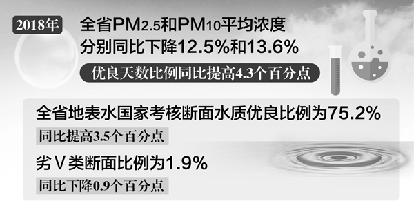 多项指标达到近年来最好水平 2018年,全省生态环境质量大幅改善,多项指标达到近年来最好水平。 全省细颗粒物(PM2.5)和可吸入颗粒物(PM10)平均浓度分别为49微克/立方米、76微克/立方米,分别同比下降12.5%和13.6%;优良天数比例71.0%,同比提高4.3个百分点,实现“两下降一提高”;全省地表水国家考核断面水质优良比例为75.2%,同比提高3.5个百分点,劣Ⅴ类断面比例为1.9%,同比下降0.9个百分点,均达到年度目标要求;土壤污染防治稳步推进。城市声环境质量总体稳定,辐射环境和生态环境质量整体良好。 具体来看,大气环境质量上,2018年,全省平均空气质量优良天数比例为71.0%,16个设区市空气质量优良天数比例范围为58.9%~98.4%,日超标污染物主要为PM2.5和臭氧(O3)。黄山市空气质量达到国家环境空气质量二级标准。 2018年,全省平均酸雨频率为7.2%,滁州、马鞍山、芜湖、铜陵、安庆和黄山等6个市出现酸雨。全省平均降水pH年均值为5.93。与2017年相比,全省酸雨污染状况有所好转。 巢湖水质和营养状态无明显变化 水环境质量上,2018年,全省监测的136条河流、37座湖泊水库总体水质状况为轻度污染。与2017年相比,全省地表水总体水质状况无明显变化,Ⅰ~Ⅲ类水质断面(点位)比例下降4.1个百分点,劣Ⅴ类水质断面(点位)比例下降1.3个百分点。 长江流域总体水质状况为良好,干流总体水质状况为优,支流总体水质状况为良好。监测的46条支流中,28条水质为优、12条为良好、4条为轻度污染、2条为重度污染。与2017年相比,长江流域总体水质状况无明显变化。 淮河流域,总体水质状况为轻度污染,干流总体水质状况为优,支流总体水质状况为轻度污染。监测的62条支流中,13条水质为优、18条为良好、21条为轻度污染、7条为中度污染、3条为重度污染(均为入境河流)。与2017年相比,淮河流域总体水质状况有所好转。 新安江流域,总体水质状况为优。干流水质状况为优;4条支流中,扬之河、率水和横江水质为优,练江水质为良好。与2017年相比,新安江流域总体水质状况保持优。 巢湖流域全湖平均水质为Ⅴ类、中度污染、呈轻度富营养状态。其中,东半湖水质为Ⅳ类、轻度污染、呈轻度富营养状态;西半湖水质为Ⅴ类、中度污染、呈轻度富营养状态。 环湖河流总体水质状况为轻度污染,监测的21条环湖河流中,3条河流水质为优、10条为良好、2条为轻度污染、2条为中度污染、4条为重度污染。与2017年相比,巢湖水质和营养状态均无明显变化;环湖河流总体水质有所好转。 全省其他36个(座)主要湖泊(水库)总体水质状况为轻度污染。17座水库中,12座水质为优、5座为良好;19个湖泊中,5个为良好、10个为轻度污染、2个为中度污染、1个为重度污染。石龙湖呈重度富营养化,芡河湖、瓦埠湖、高塘湖、焦岗湖、城西湖、南漪湖、石臼湖、菜子湖、高邮湖和龙感湖等10个湖泊呈轻度富营养化,其余25个(座)湖(库)均未出现富营养化。 应用无人机排查长江入河排污口 记者从发布会上了解到,目前我省正在开展长江流域的入河排污口排查工作,在国家要求的长江干流基础上,将范围进一步延伸至长江流域各级支流。 排查工作将采取“三级排查”方式进行,即先开展无人机航测,再进行人工核查,最后实施重点攻坚,通过人机互补的方式,将长江流域的入河排污口查清楚、查彻底,为下一步长江修复保护工作奠定基础。